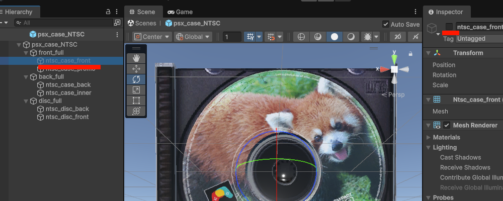 Hierarchyからpsx_case_NTSC>front_full>ntsc_case_frontを選択