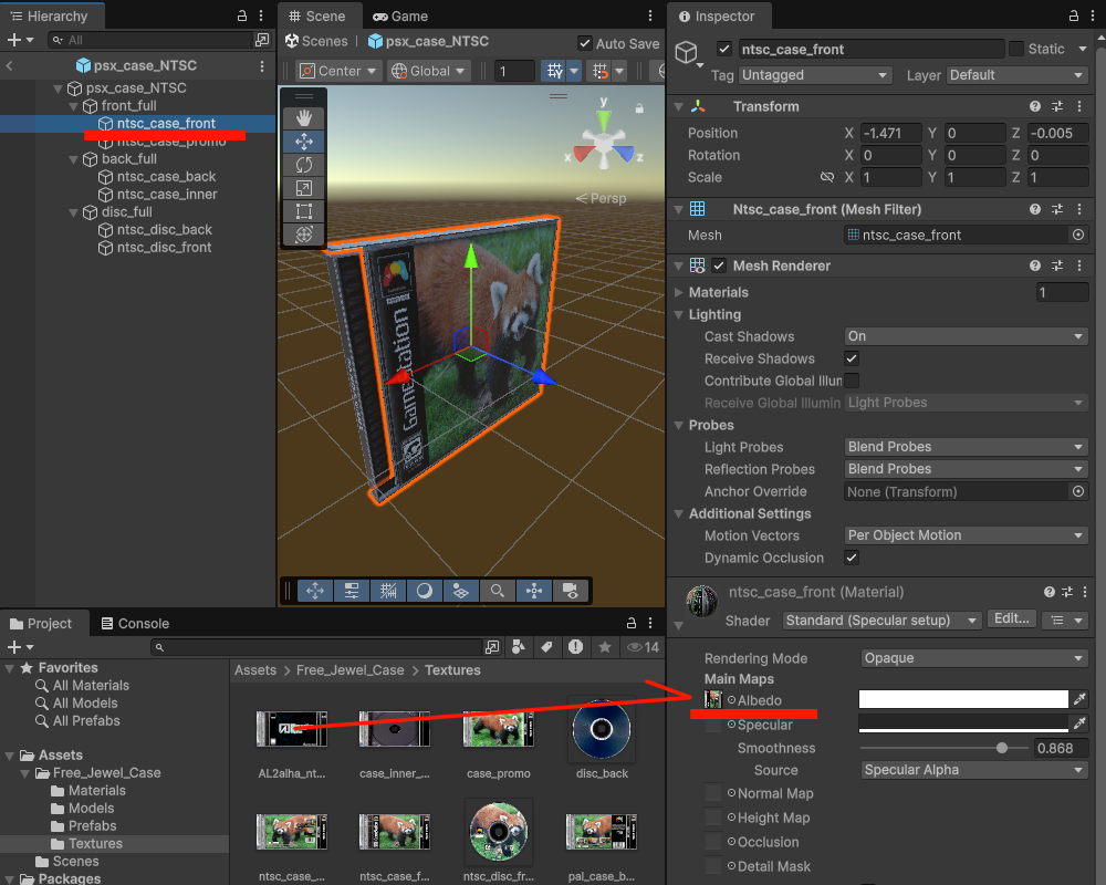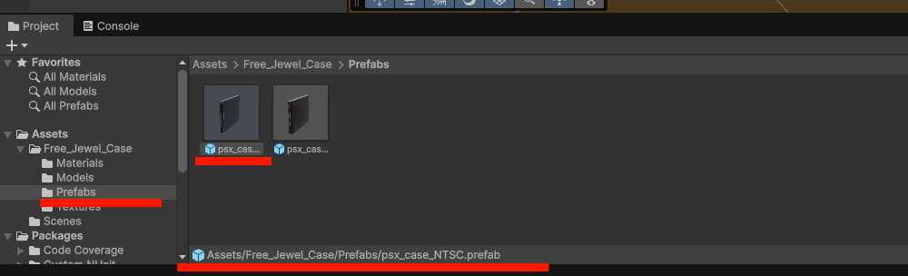 ProjectからAssets>Free_Jewel_Case>Prefabs>psx_case_NTSCを選択