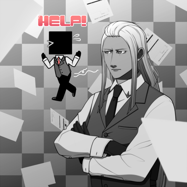 Posted in 絵 最近描いたもの(課長達) díː 2026年4月20日 課長!書類がバラバラです!の2人です。またゲームジャムに参加する機会があったら、お題にもよりますが課長に頑張ってもらうかもしれません 飲み物 前髪だけ色が違う